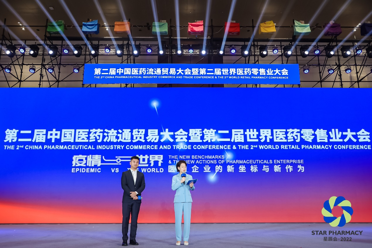 9月8日上午,由长沙市人民政府、中国医药物资协会共同主办的2022年第二届中国医药流通贸易大会暨第二届世界医药零售业大会(第二届星辰会)在星城长沙隆重开幕。葫芦娃药业集团董事长刘景萍受邀担任大会主持人并荣获“医药工业领军人物”称号。