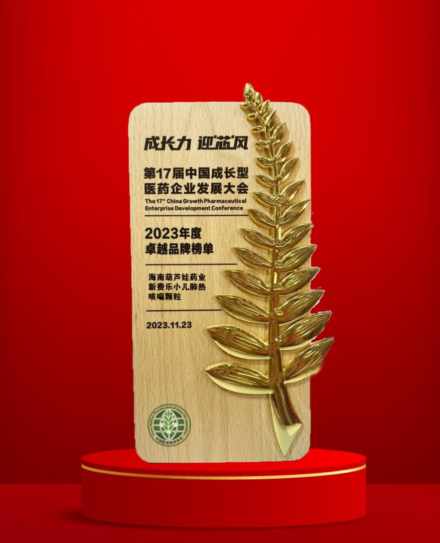 大会期间,一年一度的“金叶奖•2023年度医药行业风云人物奖”榜单重磅揭晓,葫芦娃药业集团党委书记、董事长刘景萍荣耀上榜。金叶奖是为了表彰广大医药企业家或企业为行业茁壮发展做出的卓越贡献而设立的奖项,“金”象征着品质、品牌、影响力,“叶”象征着生命、健康、成长力。金与叶结合,有“敬业、兢业、竞业”之意。此外,集团黄金单品新费乐®小儿肺热咳喘颗粒凭借卓越的产品质量和品牌影响力赢得了行业、市场和消费者的肯定,获得了“2023年度卓越品牌奖”。
