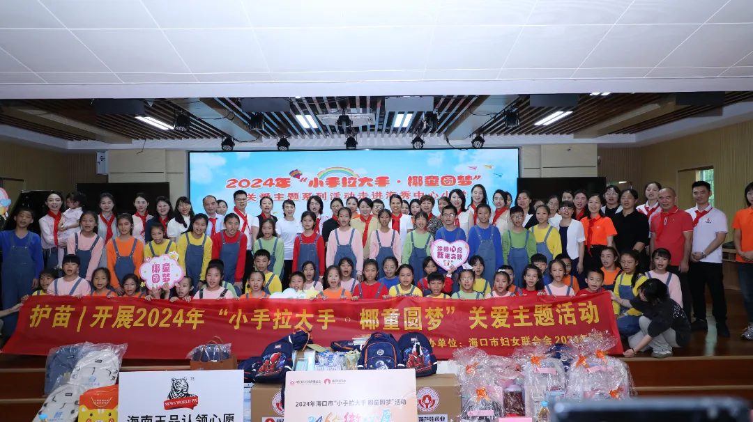 大手拉小手,圆梦微心愿。六一节期间,由海口市妇联主办的2024年“小手拉大手·椰童圆梦”关爱主题系列活动在海口市的部分小学陆续开展,葫芦娃药业集团、海南省旭日东升慈善基金会作为系列活动的参与单位,对照孩子们六一儿童节的心愿清单,为246个小朋友实现了心愿,为他们送去了节日的祝福。