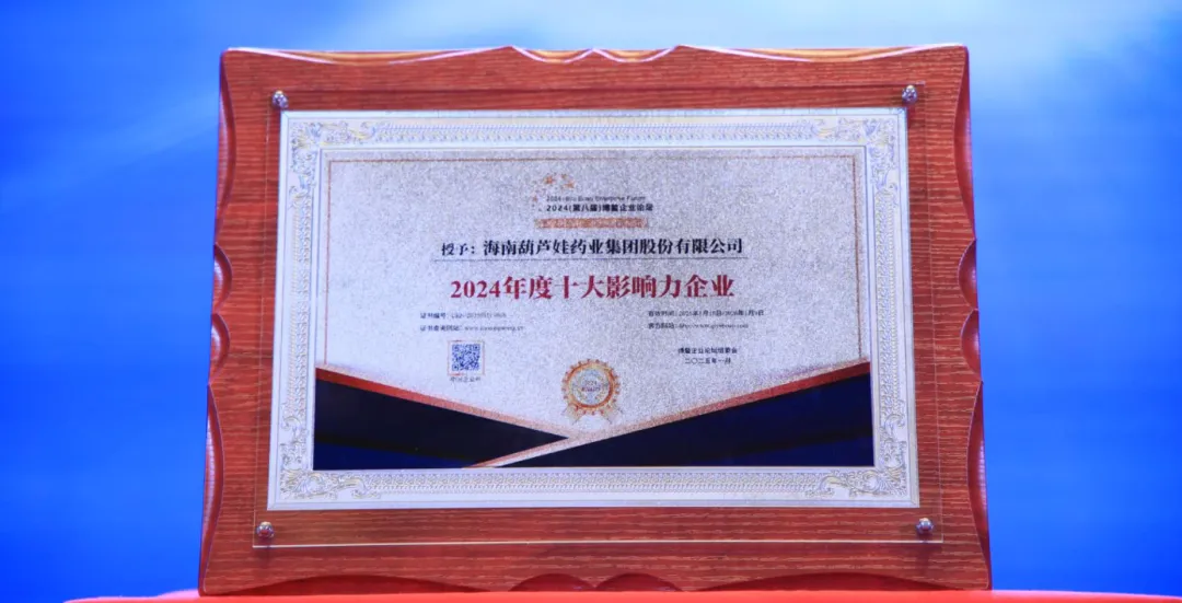 日前,第八届博鳌企业论坛暨2024博鳌健康产业论坛在海口成功举办。葫芦娃药业集团党委书记、董事长刘景萍入选“2024年度十大影响力人物”,同时,葫芦娃药业集团也入选“2024年度十大影响力企业”榜单。